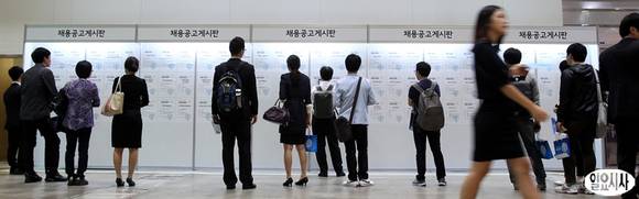 8일 서울 삼성동 코엑스에서 열린 '2013 IT·메디컬 채용박람회'를 찾은 구직자들이 채용공고 게시판을 살펴보고 있다.