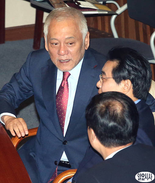 김한길 민주당 대표가 8일 오전 국회 본회의에 덥수룩한 수염 차림으로 참석해 전병헌 원내대표와 대화를 나누고 있다.