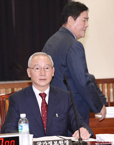 8일 오후, 서울 여의도 국회에서 열린 정보위원회 전체회의에 남재준 국정원장이 출석해 있다. (사진공동취재단)