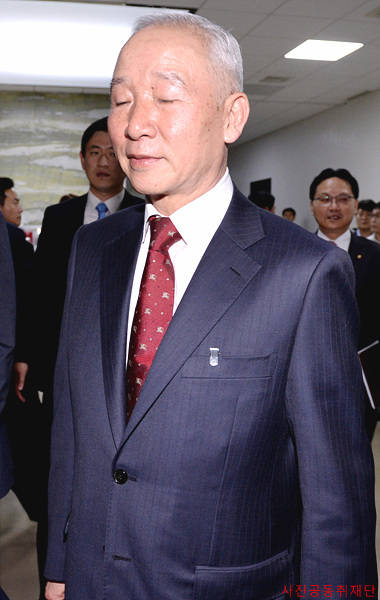 8일 오후, 남재준 국정원장이 서울 여의도 국회에서 열린 정보위원회 전체회의에 출석하기 위해 회의장으로 이동하면서 착찹한 표정을 짓고 있다. (사진공동취재단)