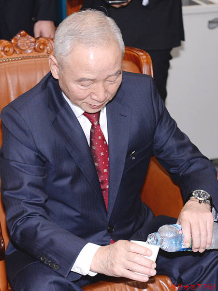 8일 오후, 서울 여의도 국회에서 열린 정보위원회 전체회의 직전, 남재준 정보원장이 목이 타는 듯 물을 따르고 있다. (사진공동취재단)