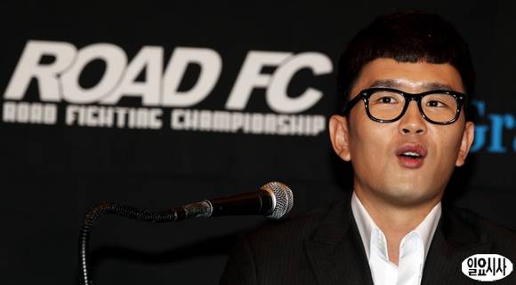 개그맨 윤형빈이 8일 오후 서울 홍은동 그랜드힐튼호텔에서 열린 로드FC 종합격투기 데뷔 기자회견에서 소감을 밝히고 있다.