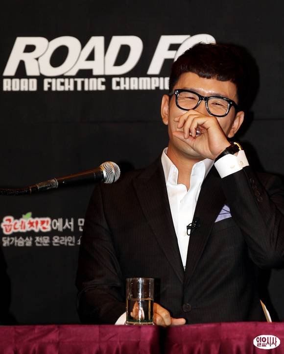 개그맨 윤형빈이 8일 오후 서울 홍은동 그랜드힐튼호텔에서 열린 로드FC 종합격투기 데뷔 기자회견에서 미소를 짓고 있다.