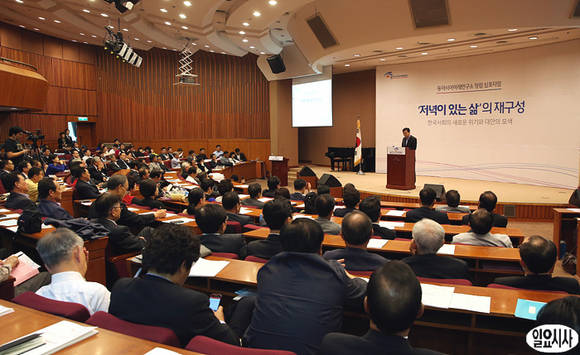 손학규 민주당 상임고문이 8일 오후, 국회헌정기념관에서 열린 동아시아미래연구 창립 심포지엄에서 기조강연을 하고 있다.