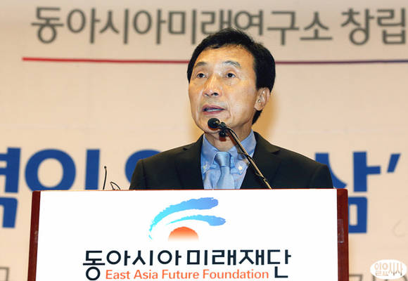 손학규 민주당 상임고문이 8일 오후, 국회헌정기념관에서 열린 동아시아미래연구 창립 심포지엄에서 기조강연을 하고 있다.