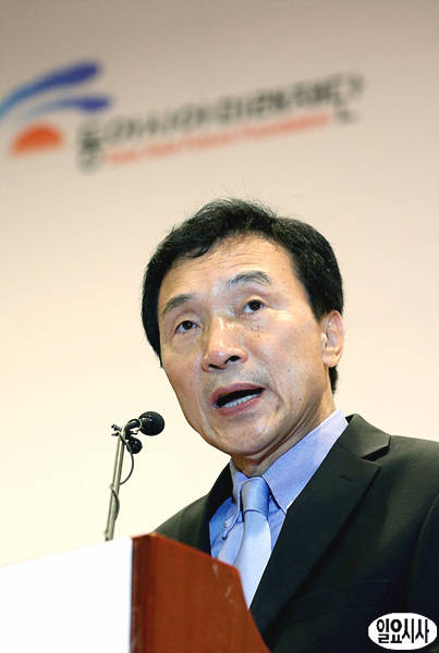 손학규 민주당 상임고문이 8일 오후, 국회헌정기념관에서 열린 동아시아미래연구 창립 심포지엄에서 기조강연을 하고 있다.