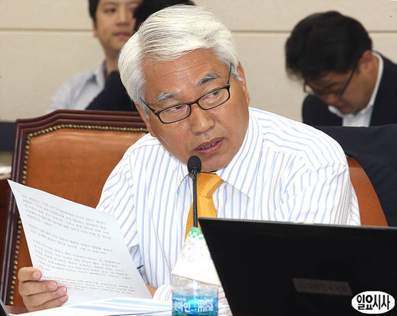 민주당 백군기 의원이 8일 국회에서 열린 국방위원회 전체회의에서 김관진 국방부장관에 질의하고 있다.