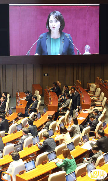유은혜 민주당 의원이 10일 국회에서 열린 본회의에서 5분 자유발언을 하고 있다.