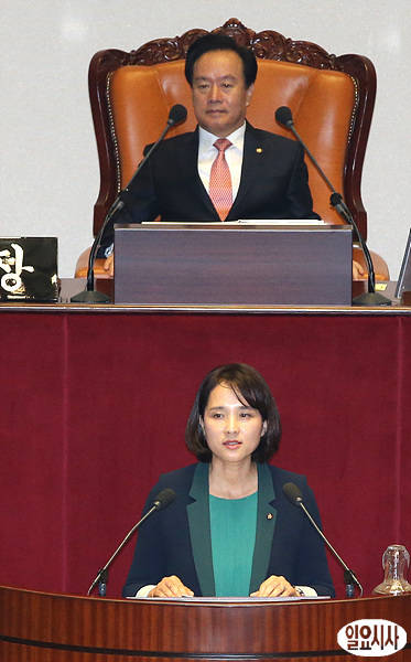 유은혜 민주당 의원이 10일 국회에서 열린 본회의에서 5분 자유발언을 하고 있다.