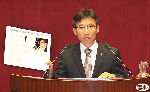 이상규 통합진보당 의원이 10일 오후 국회 본회의장에서 5분 자유발언을 통해 최근 이석기 의원의 사태 등을 둘러싼 언론 보도가 왜곡됐다며 억울함을 호소하고 있다.