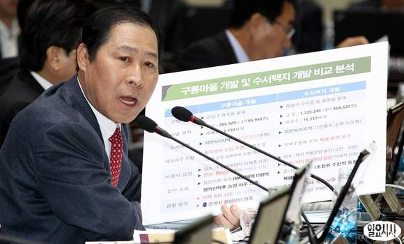 이노근 새누리당 의원이 18일 서울시청에서 열린 국회 국토교통위원회의 서울시 국정감사에서 박원순 서울시장에게 질의를 하고 있다.