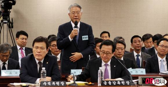 18일 서울 여의도 금융감독원에서 열린 국회 정무위원회의 금감원 국정감사에서 증인으로 출석한 현재현 동양그룹 회장이 의원들의 질의에 답하고 있다.