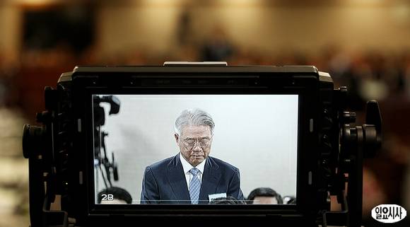 18일 서울 여의도 금융감독원에서 열린 국회 정무위원회의 금감원 국정감사에서 증인으로 출석한 현재현 동양그룹 회장이 생방송 카메라에 잡혀 있다.