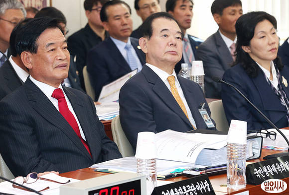 서상기 새누리당 의원 겸 국민생활체육회 회장(사진 왼쪽)이 21일, 국회에서 열린 교육문화체육관광위 국정감사에 증인으로 출석해 있다.