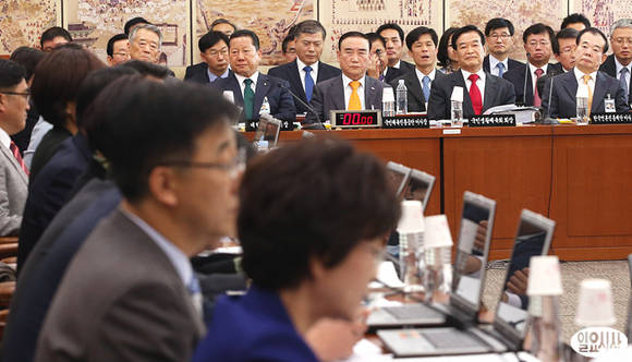 서상기 새누리당 의원 겸 국민생활체육회 회장이 증인으로 참석한 가운데 21일, 국회에서 교육문화체육관광위 국정감사가 진행되고 있다.