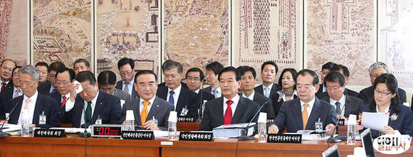서상기 새누리당 의원 겸 국민생활체육회 회장이 21일, 국회에서 열린 교육문화체육관광위 국정감사에 출석해 있다.