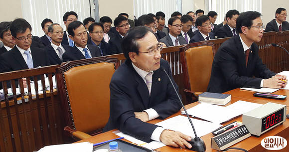 문상부 중앙선거관리위원회 사무총장이 21일 국회에서 열린 안전행정위의 중앙선관위 국정감사에서 의원들에 질의에 답변하고 있다.
