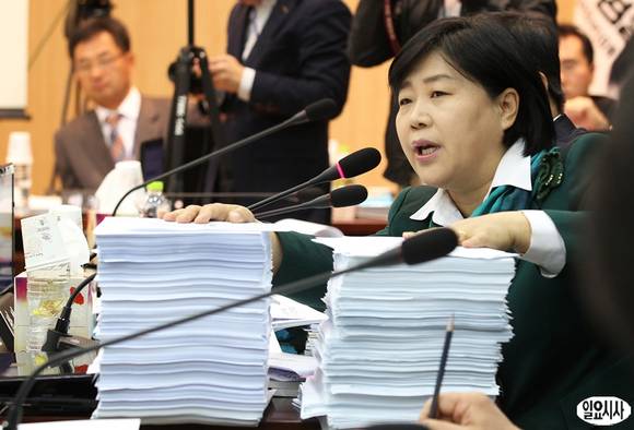 서영교 민주당 의원이 21일 서울 서초동 고등검찰청에서 열린 국회 법제사법위원회 국정감사에서 국정원 댓글 관련 질의를 하고 있다.