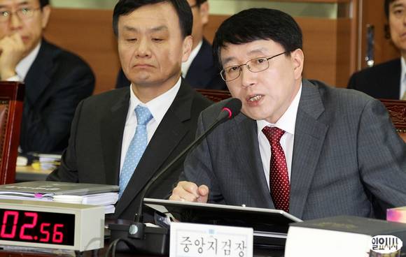 조영곤 서울중앙지검장이 21일 서울 서초동 고등검찰청에서 열린 국회 법제사법위원회 국정감사에서 의원들의 질의에 답하고 있다.