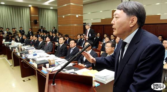 국정원 대선개입 의혹 특별수사팀장이었던 윤석열 여주지청장이 21일 서울 서초동 고등검찰청에서 열린 국회 법제사법위원회 국정감사에 참석해 의원들의 질의에 답하고 있다.