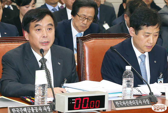 장영철 한국자산관리공사 사장이 21일 국회에서 열린 정무위의 국정감사에서 의원들의 질의에 답변하고 있다.