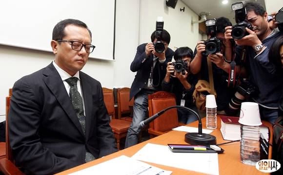 21일 서울 수송동 국세청에서 열린 국회 기획재정위원회의 국세청 국정감사에 증인으로 출석한 전두환 전 대통령의 장남인 전재국 시공사 대표가 눈을 감고 자리에 앉아 있다.