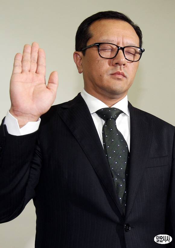 21일 서울 수송동 국세청에서 열린 국회 기획재정위원회의 국세청 국정감사에 증인으로 출석한 전두환 전 대통령의 장남인 전재국 시공사 대표가 선서를 하고 있다.