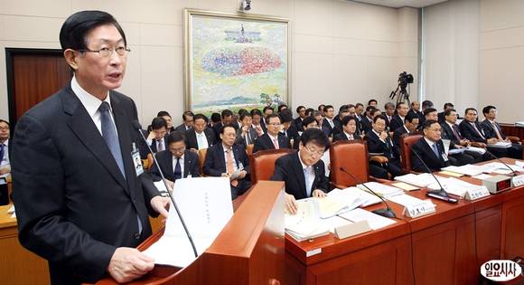 조환익 한국전력공사 사장이 25일 서울 여의도 국회에서 열린 산업통상자원위원회의 국정감사에서 업무보고를 하고 있다.