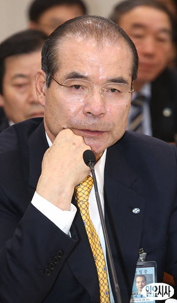 31일 농림수산식품부 국정감사가 열린 서울 여의도 국회 농림위 회의실에서 이종구 수산업협동조항중앙회 회장이 의원들의 질의를 경청하던 도중 생각에 잠겨 있다.