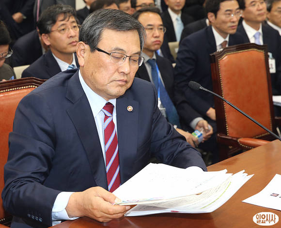 최문기 미래창조과학부 장관이 31일, 서울 여의도 국회 미래창조과학방송통신위원회에서 열린 미래창조과학부 국정감사 도중 답변자료를 확인하고 있다.