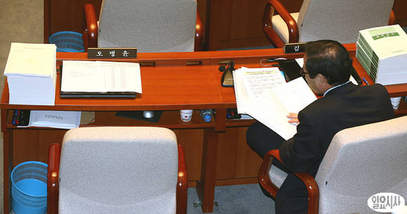 5일 오전 국회에서 예산결산특별위원회가 열린 가운데 통합진보당 오병윤 의원석이 텅 비어 있다.