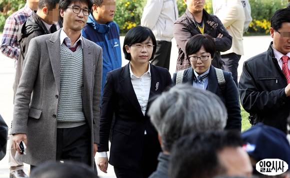 정부의 통합진보당에 대한 정당해산심판 청구가 국무회의를 통과한 5일, 이정희 대표가 서울광장에서 '통합진보당 해산기도 중단'을 촉구하는 긴급 기자회견을 갖기 위해 들어서고 있다.
