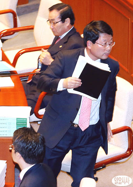 통합진보당 오병윤 의원이 5일 오후, 국회에서 열린 예산결산특별위원회 도중 퇴장하고 있다.