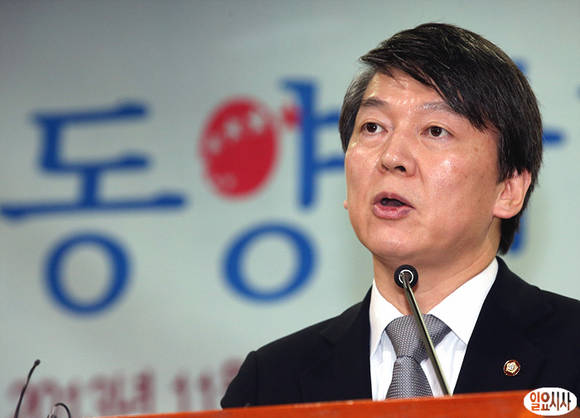 무소속 안철수 의원이 6일 오후, 국회 의원회관에서 민주당 이종걸 의원, 정의당 심상정 의원, 무소속 안철수 의원이 공동 주최한 '동양사태 어떻게 할 것인가' 정책토론회서 인사말을 하고 있다.