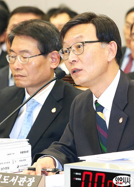 황창화 국회 도서관장이 6일 오전 국회에서 열린 운영위원회 국회사무처, 국회도서관, 국회예산정책처, 국회입법조사처에 대한 국정감사에서 의원들 질의에 답하고 있다.