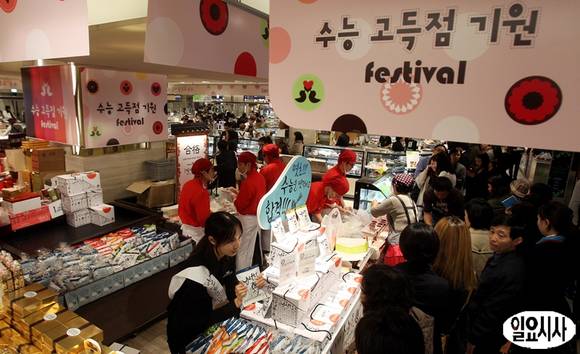 2014학년도 대학수학능력시험을 하루 앞둔 6일 서울 을지로 롯데백화점 본점에 수능고득점기원 선물들이 진열돼 있다.