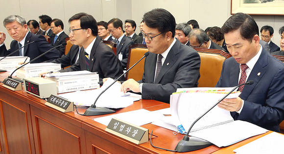 정진석 국회 사무총장, 황창화 국회 도서관장 등이 6일 오전, 국회에서 열린 운영위원회 국회사무처, 국회도서관, 국회예산정책처, 국회입법조사처에 대한 국정감사에 출석해 있다.