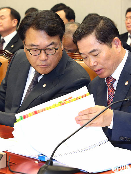고현욱 국회 입법조사처장이 6일 오전 국회에서 열린 운영위원회 국회사무처, 국회도서관, 국회예산정책처, 국회입법조사처에 대한 국정감사에서 자료를 확인하고 있다.