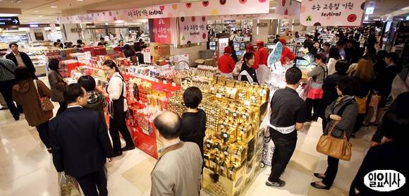 2014학년도 대학수학능력시험을 하루 앞둔 6일 서울 을지로 롯데백화점 본점에 수능고득점기원 선물을 사려는 고객들로 북적이고 있다.
