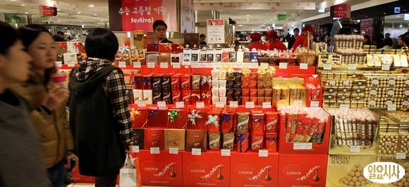 2014학년도 대학수학능력시험을 하루 앞둔 6일 서울 을지로 롯데백화점 본점에 수능합격기원 선물들이 진열돼 있다.