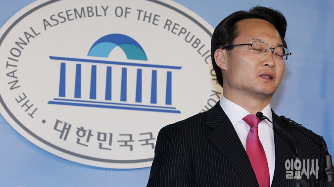 조해진 국회 미래창조과학방송통신위원회 새누리당 간사가 21일 서울 여의도 국회 정론관에서 원자력방호방재법 처리무산 기자회견을 갖고 있다.