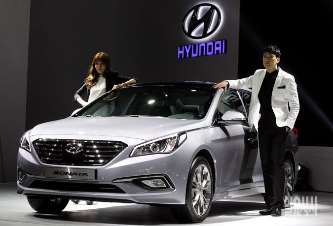 현대자동차가 24일 서울 삼성동 코엑스에서 7세대 모델로 새롭게 진화한 '신형 쏘나타'를 공개하고 있다. 이번에 출시된 '신형 쏘나타'는 디자인과 주행성능, 안전성에 이르는 전 부문에서 현대차의 최신 기술력이 모두 집약된 월드 프리미엄 중형 세단이다.