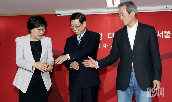 [포토] 새누리당 서울시장 후보들, '잘 해봅시다'
