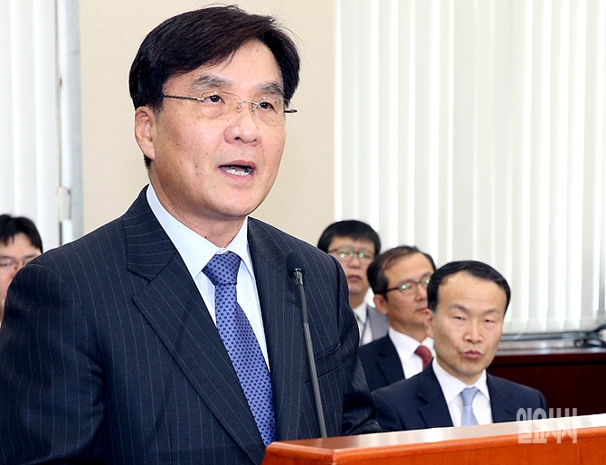 24일 오전, 강병규 안전행정부 장관 후보자가 서울 여의도 국회에서 열린 인사청문회에 출석해 모두발언하고 있다.