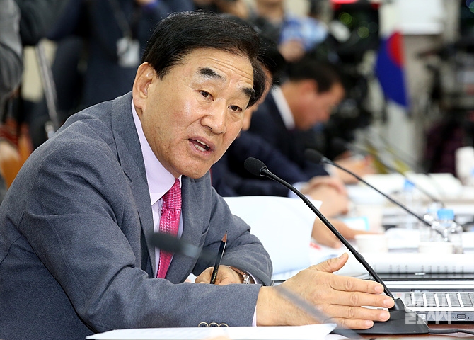 24일 오전, 이재오 새누리당 의원이 서울 여의도 국회에서 열린 강병규 안전행정부 장관 후보자에 대한 인사청문회에서 질의하고 있다.