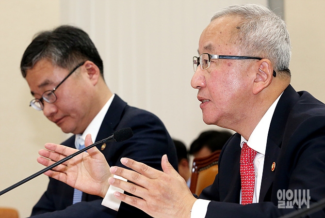 24일, 현오석 경제부총리 겸 기획재정부 장관이 국회에서 열린 창조경제활성화 특별위원회에 출석해 의원들의 질의에 답변하고 있다.