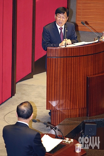 7일 오전, 서울 여의도 국회에서 열린 국회 사흘째 대정부질문에서 새누리당 이종진 의원이 정홍원 국무총리에게 질의하고 있다.