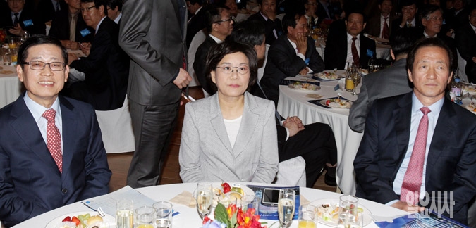 정몽준(오른쪽부터), 이혜훈, 김황식 새누리당 서울시장 예비후보가 7일 서울 마포구 상암동 YTN 뉴스퀘어에서 열린 NEW YTN 출범식에 참석하고 있다.