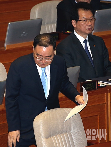 8일, 서울 여의도 국회 본회의장에서 교육·사회·문화 분야 대정부질문이 나흘 째 열린 가운데, 정홍원 국무총리와 서남수 교육부 장관이 출석해 있다.
