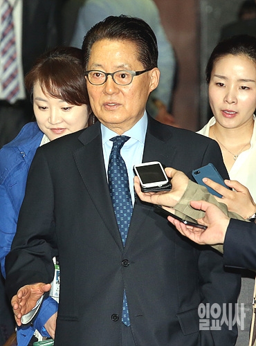 8일, 새정치민주연합 박지원 의원이 서울 여의도 국회에서 열린 새정치민주연합 긴급의원총회 참석을 위해 입장하고 있다.
